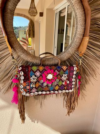Bolso étnico indio multicolor con flecos