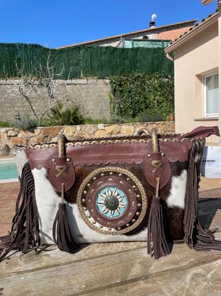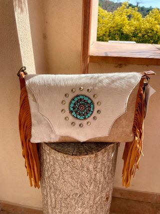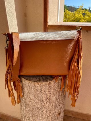 Bolso Piel Flecos y Detalle Étnico