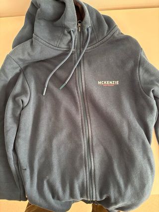 Sudadera azul de la marca McKenzie, en talla XS. Se encuentra en perfecto estado, casi nueva. - Cierre completo con cremallera. - Capucha con cordones. - Bolsillos laterales.