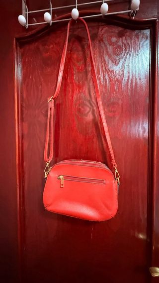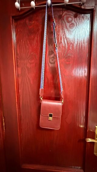 Bolso bandolera de estilo moderno. - Correa ajustable con diseño. - Cierre metálico dorado.