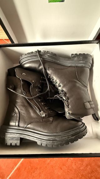 Botas de piel con cordones y cremallera lateral. - Cierre de cordones. - Cremallera lateral. - Suela gruesa.