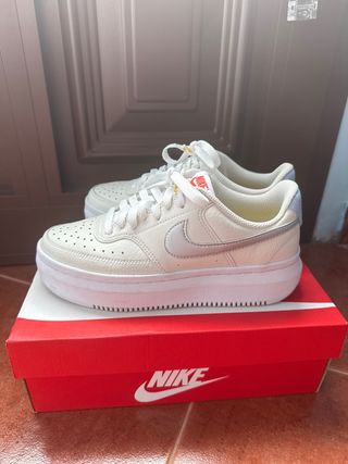 Zapatillas Nike Court Vision Alta en color blanco, con un diseño moderno y plataforma. - Detalle plateado en el lateral. - Cierre de cordones. - Suela de plataforma gruesa.