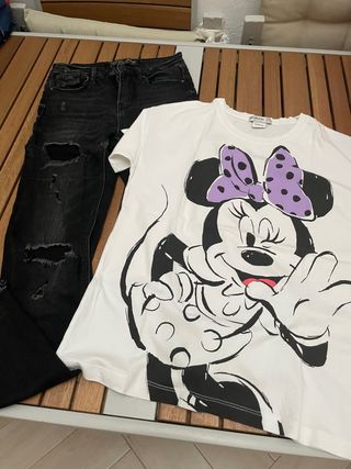 Vaquero negro (talla 32) y camiseta Minnie (talla XS)
