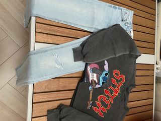 Vaquero azul (talla 32) y sudadera de Stitch ( talla XS)