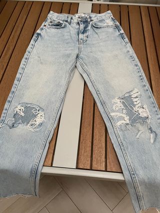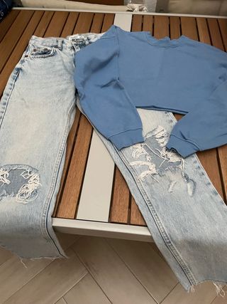 Vaquero azul (talla 34) y sudadera corta azul ( talla XS)