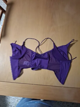Este corpiño morado es una pieza llamativa y versátil. - Diseño con copas. - Cierre frontal de corchetes. - Tirantes ajustables para un ajuste personalizado. - Detalle de malla en los laterales.