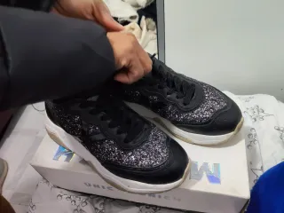 Zapatillas Munich en perfecto estado, con muy poco uso. - Diseño moderno en negro y detalles plateados. - Talla 37.