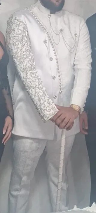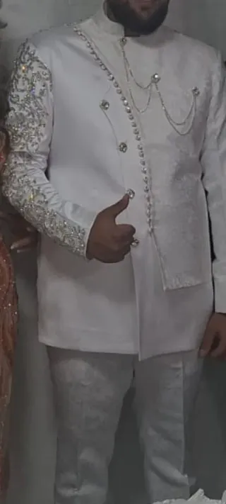 Traje de novio con detalles brillantes. - Diseño con pedrería. - Pantalón de vestir.fagin y camisa