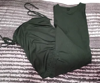Conjunto de ropa para mujer. - Vestido con cordones ajustables. - Tejido acanalado. Top granate y top azul claro