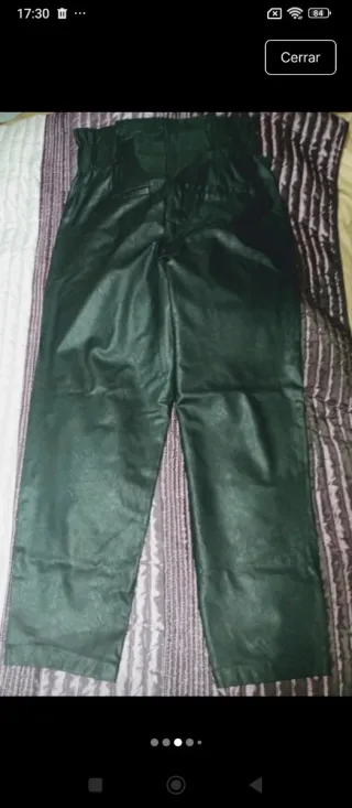 Pantalón de polipiel con un diseño moderno y elegante. - Cintura elástica. - Cierre de botón y cremallera. - Bolsillos funcionales. Cintura alta Pone una 40 pero es más grande,por lo menos una 42.