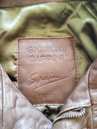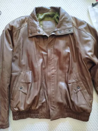 Cazadora de cuero marrón de la marca Giorgio Sappini. - Diseño clásico. - Cierre de cremallera. - Bolsillos frontales con solapa y botón. - Cuello con botones a presión. - Puños y cintura elásticos.