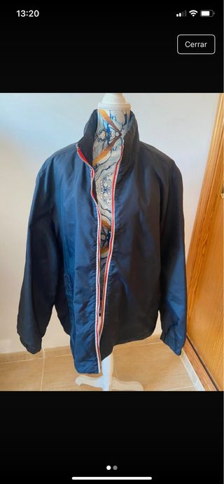 Chaqueta estilo bomber de la marca Mac Clow's. - Color principal azul marino con detalles en naranja y blanco en el cuello. - Cierre frontal de cremallera. - Bolsillos con cremallera en el pecho y en el interior. - Bolsillos interiores para llevar El móvil y auriculares. - Parches decorativos en la parte frontal y laterales.