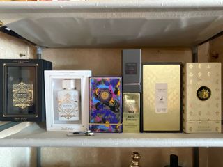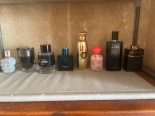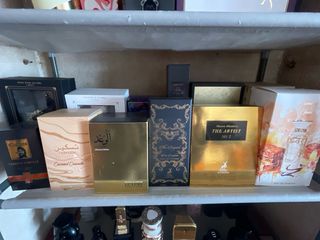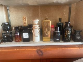 Conjunto de cajas de perfumes vacías, ideales para coleccionistas o para guardar tus fragancias. - Diseño elegante en negro y dorado. - Incluye cajas de marcas como Tom Ford, Domino y otras. - Perfectas para exhibición o almacenamiento.