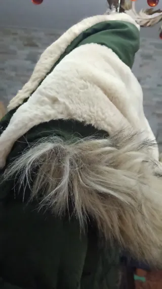 Anorak con forro de pelo sintético y detalles en verde. - Capucha con ribete de pelo. - Cierre de cremallera. - Bolsillos laterales.
