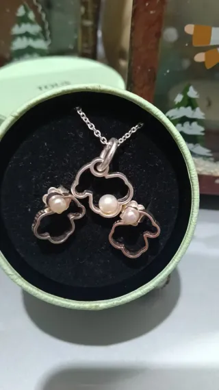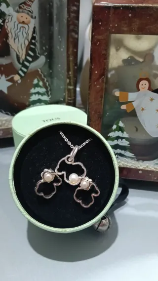 Elegantes pendientes de la marca Tous. ATENCION: Solo se venden los PENDIENTES - Diseño en forma de oso. - Detalle de perlas. - Color plata y blanco.