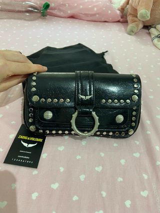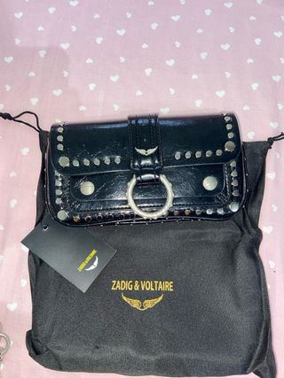 Bolso de mano Zadig & Voltaire con un diseño rockero y elegante. - Acabado en piel negra. - Detalle de tachuelas plateadas. - Cierre con hebilla y anilla metálica. - Incluye funda guardapolvo.