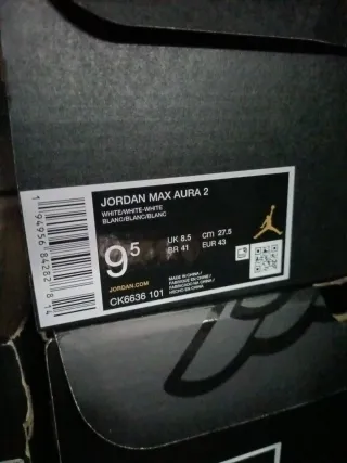 Zapatillas Jordan Max Aura 2 en color blanco.Nuevas a estrenar de tienda oficial Nike y con su ticket nunca usadas. Dejo QR de la caja para verificacion de originalidad. La caja tiene tapadera está en perfectas condiciones. -Logotipo en el lateral y en la lengüeta - Diseño moderno y deportivo. - Detalles de malla transpirable. - Suela con amortiguación visible.