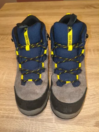 Botas de montaña, ideales para senderismo y actividades al aire libre. - Diseño robusto y cómodo. - Cierre con cordones para un ajuste seguro. - Modelo MH 500 (Decathlon)