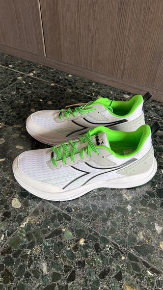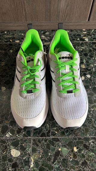 Zapatillas deportivas Diadora para running. - Diseño en blanco con detalles en verde lima. - Cierre con cordones. - Parte superior de malla transpirable.