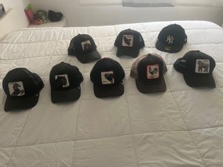 Colección de gorras Goorin Bros originales con diseños variados. - Gorra con diseño de oso. - Gorra con diseño de águila. - Gorra con diseño de toro. - Gorra con diseño de gallo. - Gorra con diseño de gorila. - Gorra con diseño de pantera. - Gorra con diseño de caballo. - Gorra New York Yankees.
