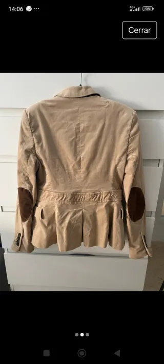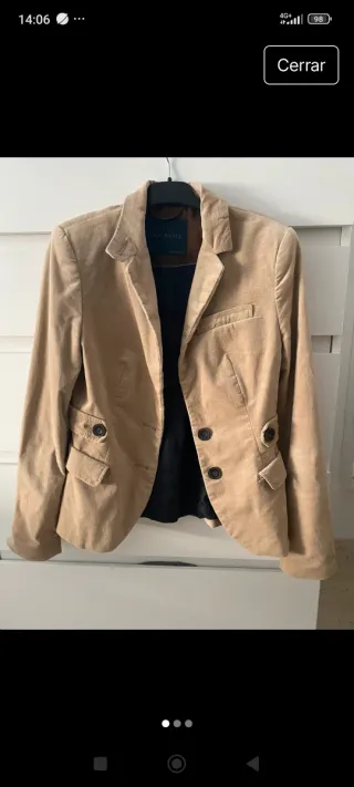 Americana de pana de la marca Zara en color beige. Un clásico que no pasa de moda. - Cierre de un botón. - Bolsillos delanteros con solapa. - Cuello solapa. - Puños con botones.