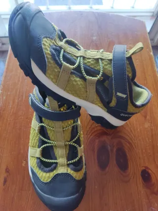 Sandalias deportivas Quechua en talla 37. Perfectas para actividades al aire libre. - Cierre de velcro. - Cordones elásticos. - Suela de goma. NOTA: en la última foto se muestra que está rota la tela en la parte interior que da el talón.
