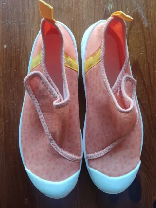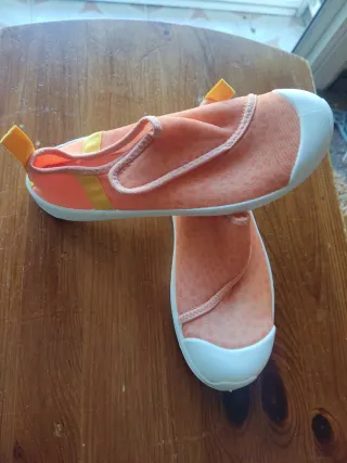 Ercarpines de Decathlon en talla 36-37. Son de color naranja con detalles amarillos. - Material textil. - Diseño tipo slip-on. - Suela blanca.