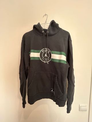 Sudadera con capucha original colaboración de Jordan y Paris Saint-Germain. - Diseño con franjas verdes y blancas en el pecho. - Logo de Jordan y PARIS en la parte frontal. - Bolsillo adelante.