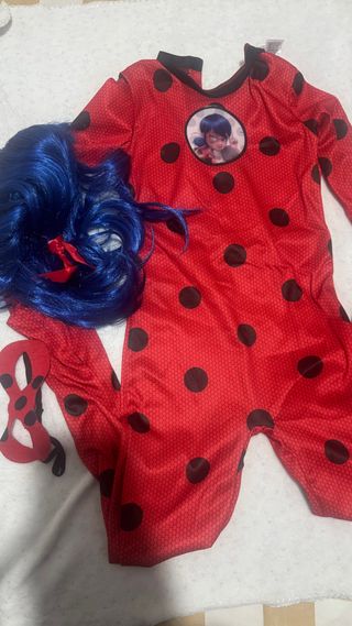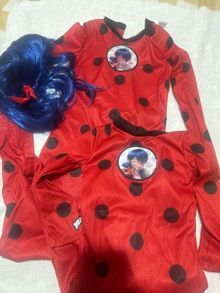Conjunto de disfraz de Ladybug. - Incluye dos disfraces, uno en talla 9/10 y otro en talla 5/6. - Diseño inspirado en el personaje. - Incluye máscara y peluca azul.