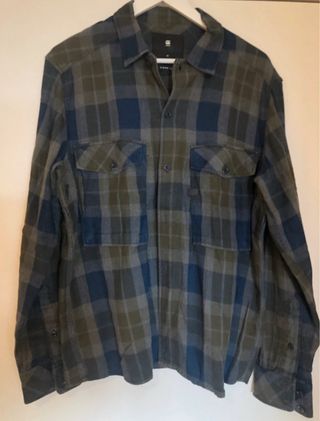 Camisa de cuadros de manga larga. - Diseño a cuadros en tonos azules y verdes. - Cierre de botones en la parte delantera. - Dos bolsillos en el pecho con solapa.