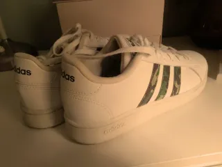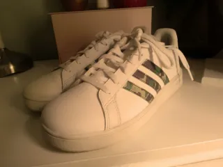 Zapatillas deportivas Adidas en color blanco con detalles de camuflaje. - Diseño con las tres rayas características de Adidas. - Combinación de blanco y estampado militar.