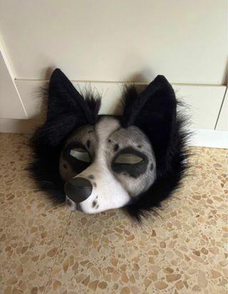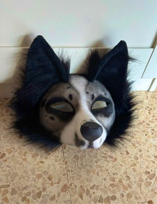 Máscara de therian de perro, estilo Border Collie. Ideal para quienes buscan una pieza única. -Alta calidad - Diseño realista - Pintado con aerógrafo