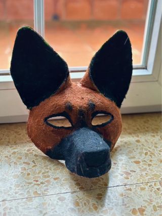 Máscara con diseño de perro, lobo o pastor alemán - Fabricada con materiales texturizados - Orejas puntiagudas y hocico pronunciado - Aberturas para los ojos -Sin cinta
