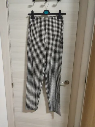 Pantalón de vestir con estampado de cuadros. - Diseño de talle alto. - Pierna recta.