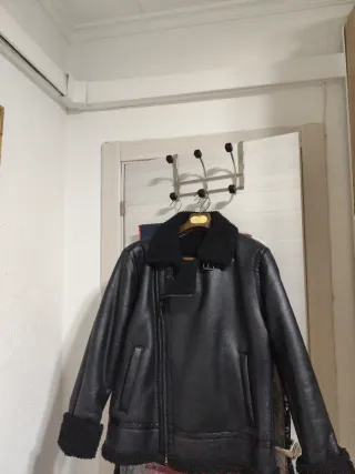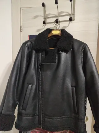 Chaqueta de estilo aviador con forro de borreguito. - Cierre de cremallera. - Cuello con solapas y detalle de hebilla. - Puños y bajo con acabado en borreguito.