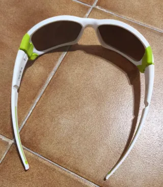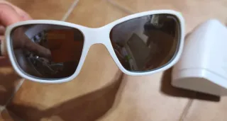 Gafas de sol con montura blanca con detalles en verde. - Lentes semipolarizadas. - Diseño moderno y elegante. - Perfectas para proteger tus ojos del sol. - Incluyen funda.