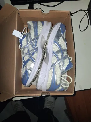 Zapatillas deportivas Asics para running, con un diseño moderno y cómodo. - Combinación de colores azul, plateado y blanco. - Materiales transpirables para mayor confort. - Suela diseñada para amortiguación y soporte.