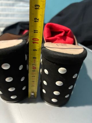 Sandalias de tacón negras con lunares blancos