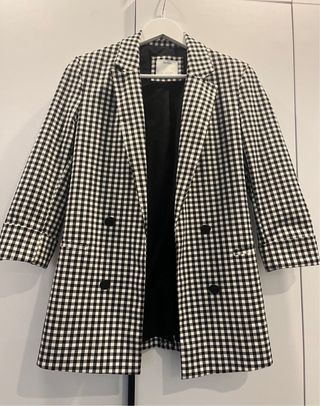 Blazer de cuadros de la marca Bershka. - Diseño de cuadros blancos y negros. - Corte clásico. - Cierre de doble botonadura.