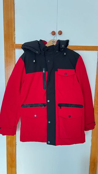 Campera de nieve con un diseño moderno y llamativo. - Combinación de colores rojo y negro. - Capucha integrada. - Múltiples bolsillos frontales. - NO TIENE USO