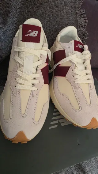 Zapatillas New Balance 327 en color beige y vino tinto. Nuevas regalo reyes, Tengo que usar unas plantillas especiales y la plantilla no entra bien.