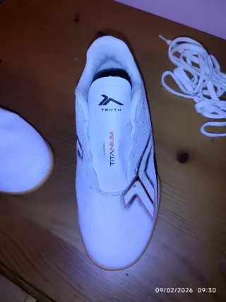 Zapatillas de fútbol de la marca Tenth, con un diseño moderno y detalles en naranja. - Parte superior de malla transpirable. - Suela de goma. - Cierre de cordones. Solo un uso