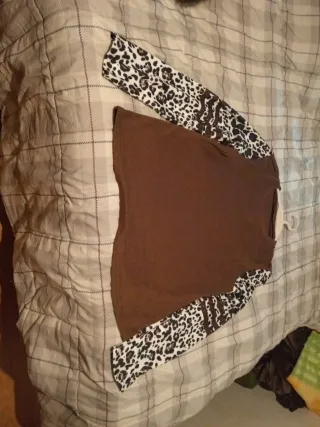 Jersey de punto con mangas estampadas. - Diseño con estampado de leopardo en las mangas. - Cuerpo liso en color marrón.
