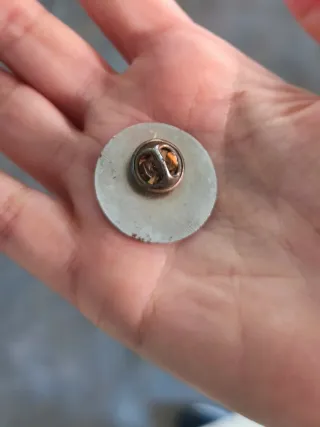 Pin conmemorativo de Union 76. - Diseño circular con el número 76 en negro y dorado. - Fondo rojo brillante. - Borde metálico.