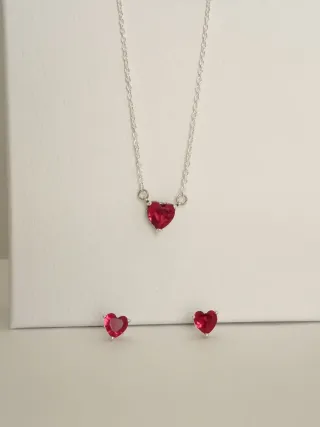 Conjunto de Collar y pendientes corazón rojo