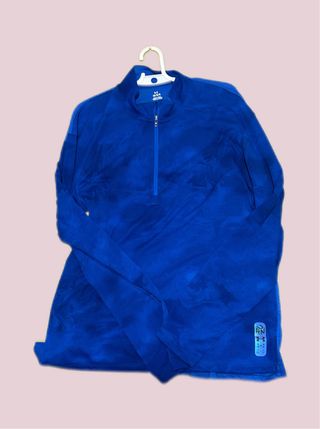 Sudadera deportiva con cremallera de cuarto. - Diseño tie-dye en tonos azules. - Cuello alto. - Manga larga.