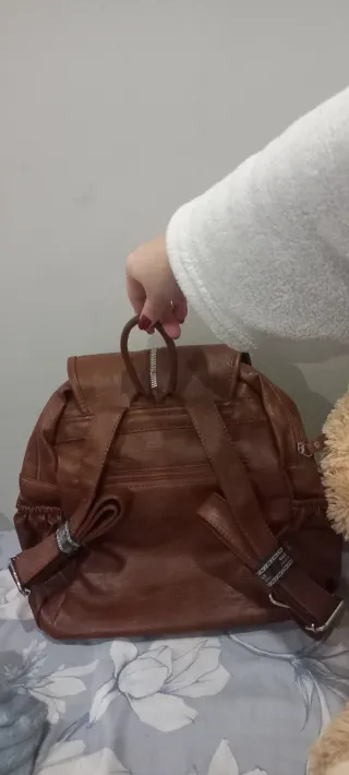 Mochila de cuero marrón