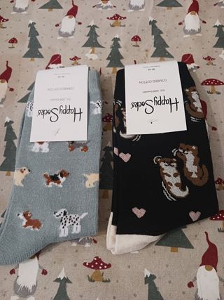 Lote 6 pares de calcetines Happy Socks nuevos sin estrenar para julia : perritos 🐕 y nutrias ,pingüinos rosas y llamas ,conejos y ovejas 🐑.