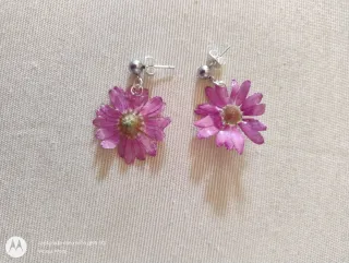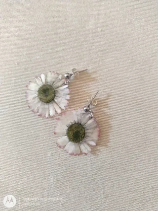 Pendientes con margaritas naturales. Piezas únicas hechas artesanalmente. Dale un toque bucólico a tu estilo este verano. - Flores de margarita secas. - Detalles en tonos rosas y verdes.