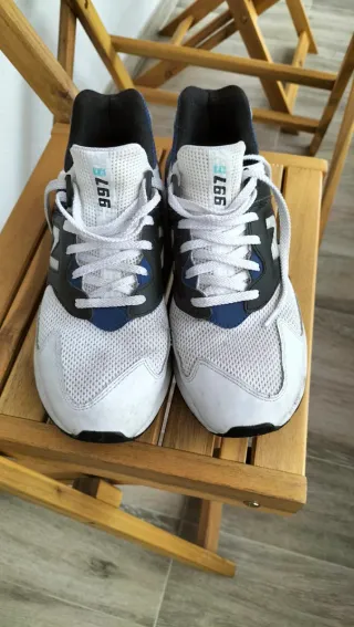 Zapatillas deportivas New Balance modelo 997. - Diseño moderno en blanco y azul. - Parte superior de malla transpirable. - Cierre con cordones blancos. Las zapatillas están muy bien conservadas.Precio negociable